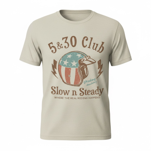 Slow Moto Club T-shirt. All about the relaxing and taking in the views. 5 minutes of driving with 30 minutes of chilling on the trails.